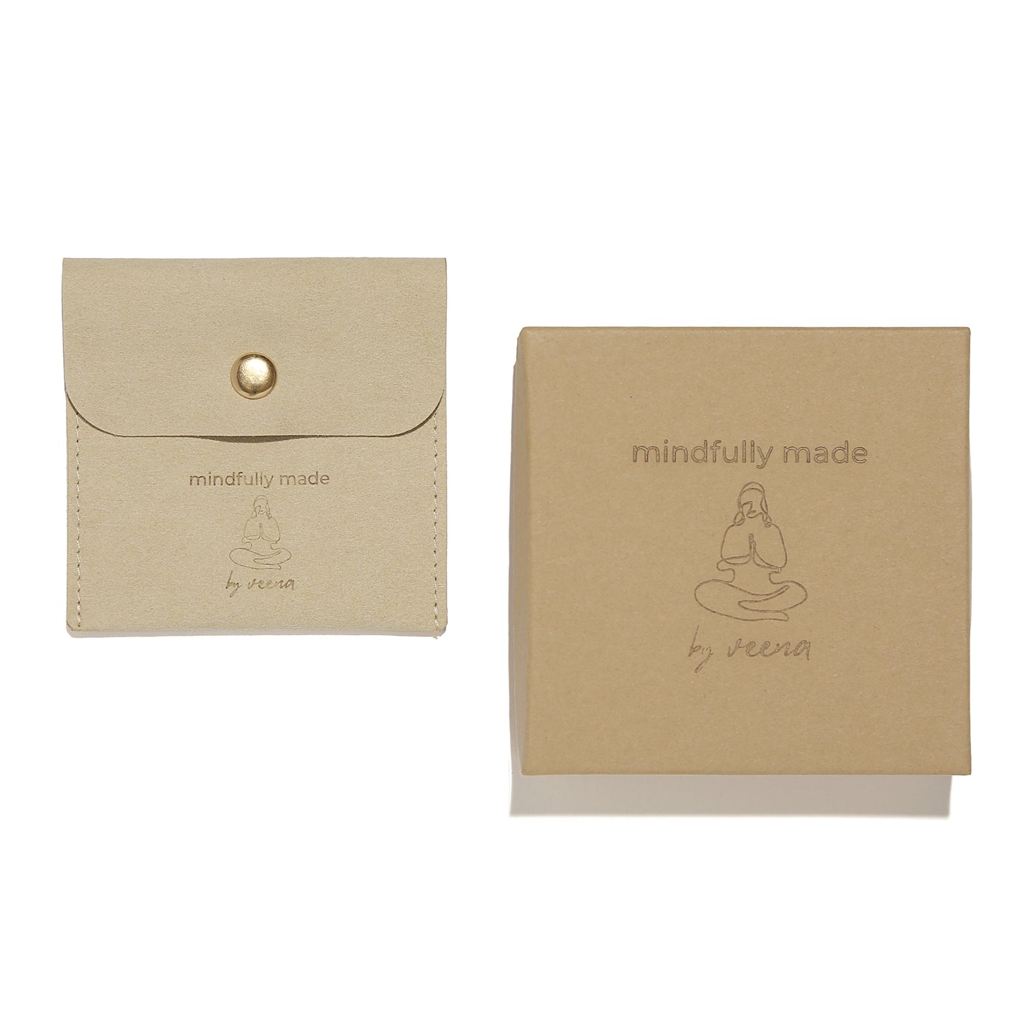 Two beige pouches with 'mindfully made by veera' branding on a white background